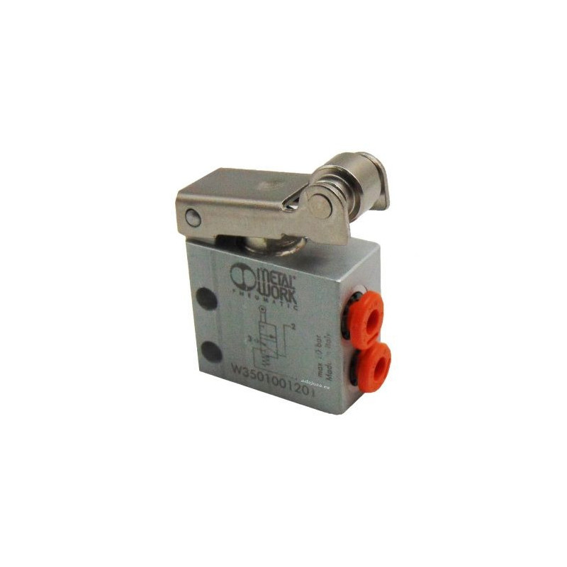 Fin de course pneumatique rouleau 3/2 NC diamètre 4 raccords latéraux - Metal Work
