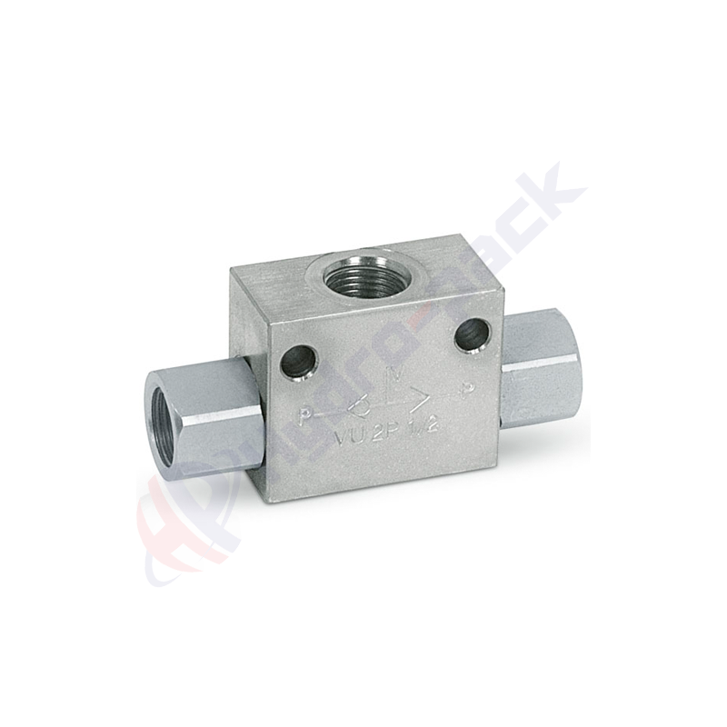 VANNE NAVETTEVU2P 1/2 | V0670Ces vannes sont utilisées pour sélectionner une pression plus élevée entre deux conduites de pression. Ils peuvent être utilisés pour fournir un signal pilote sur les freins de moteurs hydrauliques.