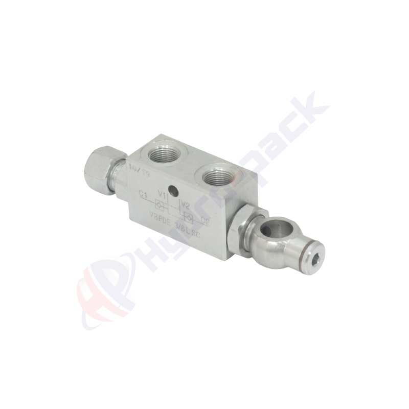 CLAPET ANTI-RETOUR DOUBLE PILOTE VBPDE 3/8 L SC | Le clapet anti-retour V0112A est le type le plus simple de soupape de commande directionnelle utilisée dans les systèmes hydrauliques. Les clapets anti-retour arrêtent l'écoulement du fluide dans un sens et permettent un écoulement libre dans le sens opposé. Ils sont également connus sous le nom de clapets anti-retour. Ces clapets servent à bloquer le cylindre dans les deux sens. Le débit est libre dans un sens et bloqué dans le sens inverse jusqu'à ce que la pression de pilotage soit appliquée. Ils sont utilisés sur les vérins à double effet et idéaux pour les vérins très courts. La cartouche de valve peut également servir de raccord banjo, permettant une rotation de 90° après avoir desserré l'écrou.