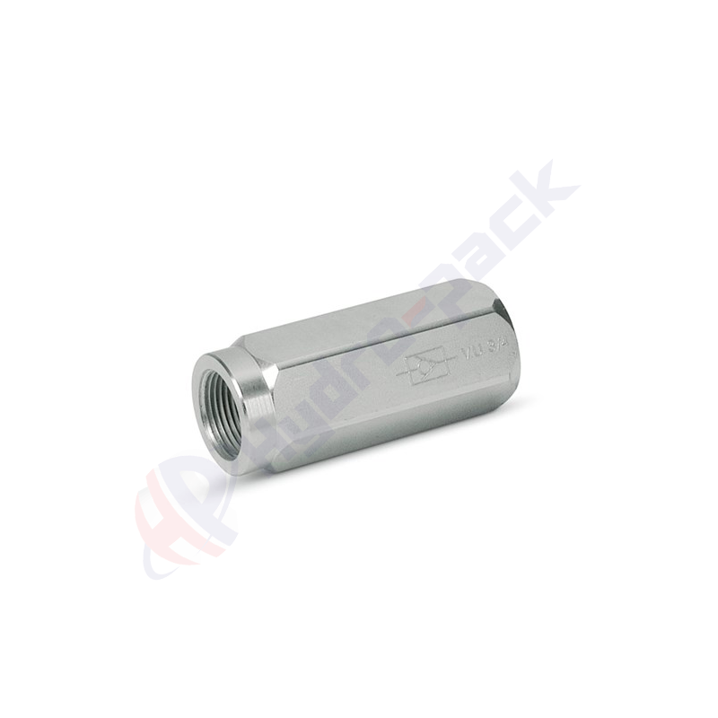 CLAPET ANTI-RETOUR EN LIGNEVU 1 1/2 | Le clapet anti-retour V0632A est le type le plus simple de soupape de commande directionnelle utilisée dans les systèmes hydrauliques. Les clapets anti-retour arrêtent l'écoulement du fluide dans un sens et permettent un écoulement libre dans le sens opposé. Ils sont également connus sous le nom de clapets anti-retour. Ils sont utilisés pour bloquer les pointes de pression, empêcher les conduites d'huile de se vider et bloquer le débit d'huile des accumulateurs.