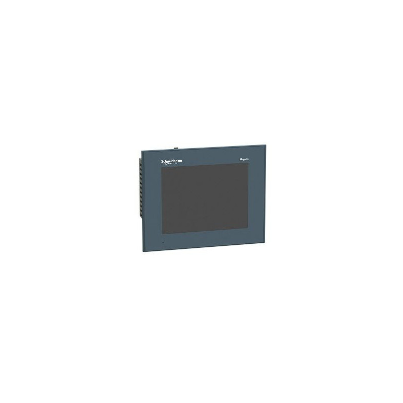 Schneider HMI HMIGTO4310 Operator dialogue touchscreen HMI / Programmable Terminal (PT) – (Magelis GTO) – 640x480pixels display (7.5″ VGA TFT 65K color with LED backlight) – IP65 / IP67 / NEMA 4X – 96MB (Application) memory capacity – can connect with 4GB SD card (expansion) – with Modbus + Modbus TCP/IP + Uni-TE + RS-232C + RS-485 + Ethernet TCP/IP communication capability – 24Vdc supply voltage – with USB mini-B port + USB type A port + RJ45 ports x 2 + 9-pin D-Sub connector – Flush mounting – with Magelis OS pre-installed – 333 MHz RISC processor – Replaces XBTGT4230 / XBTGT4330